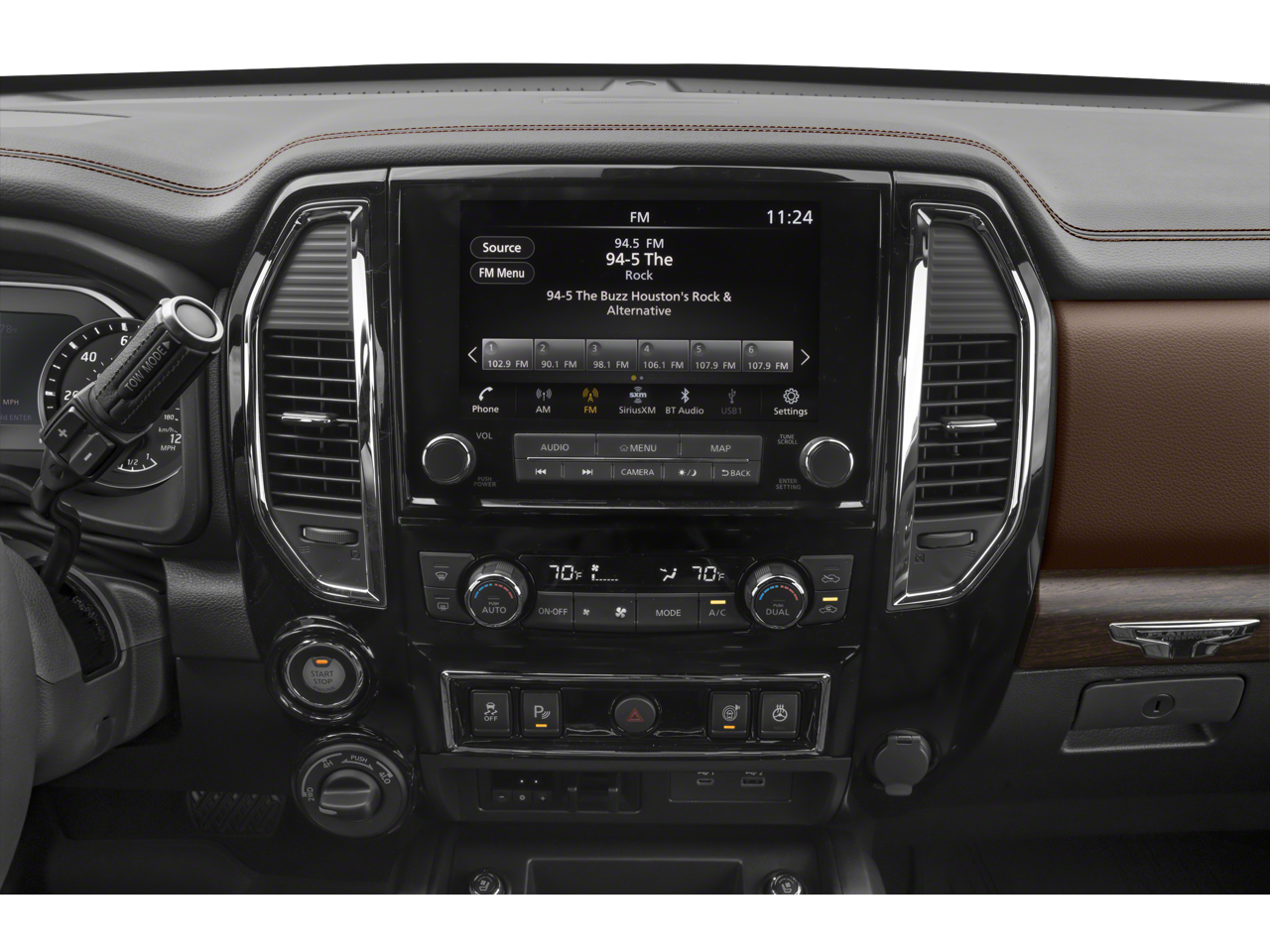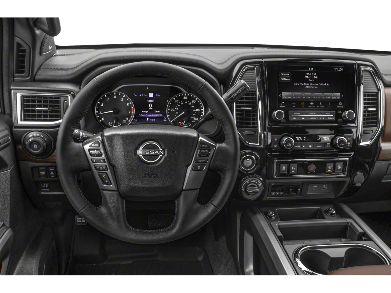 - Radio: NissanConnect w/Navigation -inc: AM/FM/SiriusXM, Fender premium audio system w/12 speakers (including amp, underseat subwoofer, center speaker and front/rear tweeters), wireless Apple CarPlay, Android Auto, 9" touchscreen display, Wi-Fi hotspot, Nissan door-to door navigation w/3D building graphics and satellite imagery, connected navigation features including online POI search, over-the-air map updates, and online premium traffic information, SiriusXM Traffic, SiriusXM Travel Link (weather, fuel prices, movie listings, stock info, sports and parking), TomTom weather, 2 illuminated USB connections (1 type A, 1 type C), Bluetooth® hands-free phone system, streaming audio via Bluetooth®, hands-free text messaging assistant, DVD pre-wire and NissanConnect services