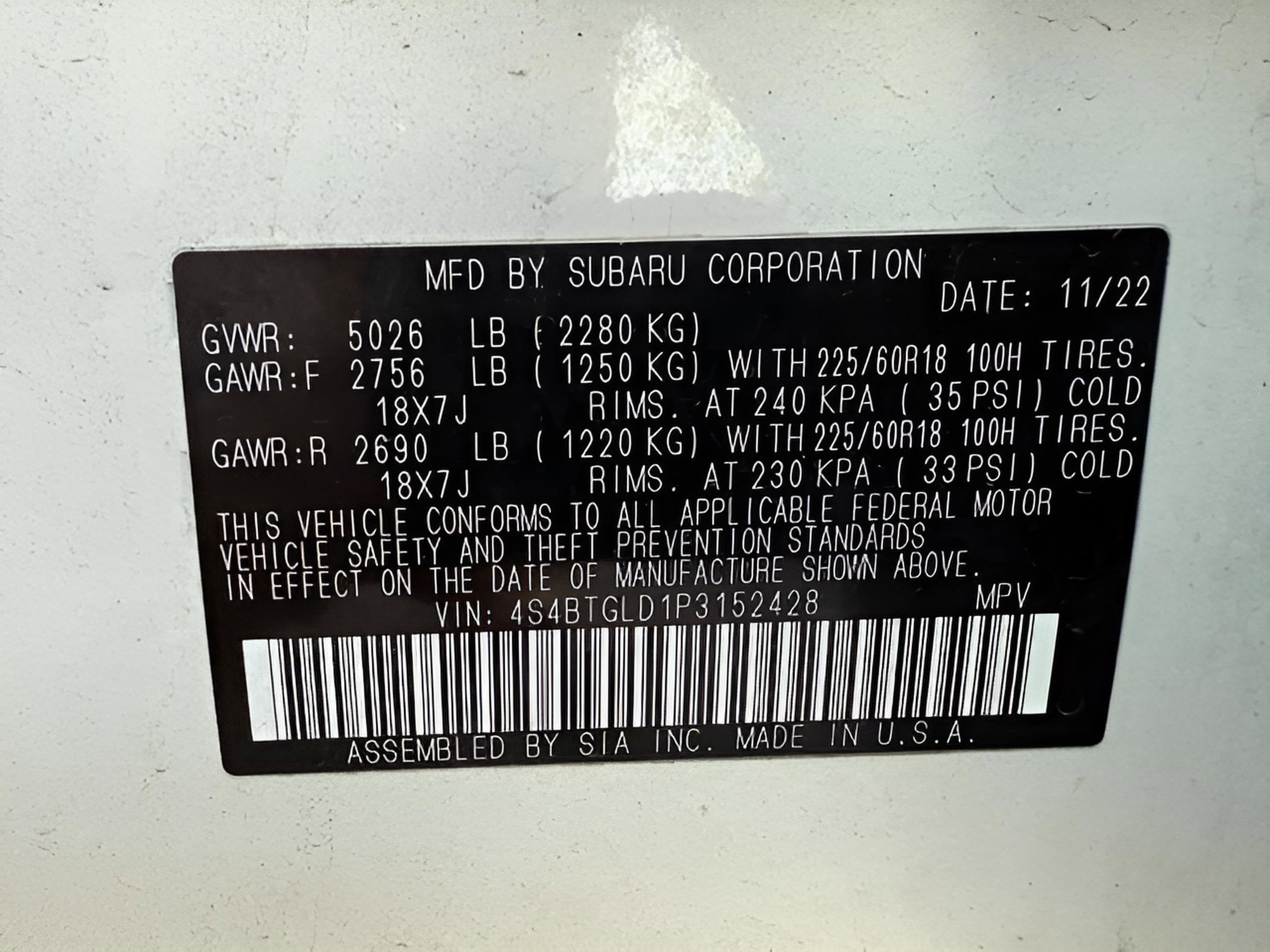 - Vehicle Name: Subaru Outback