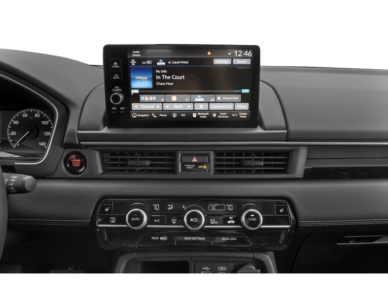 - Radio: BOSE Premium Sound System -inc: 12 speakers w/subwoofer, 9" color touchscreen, Bluetooth® HandsFreeLink and streaming audio, Radio Data System (RDS), Speed-sensitive Volume Compensation (SVC), wireless Apple CarPlay and Android Auto compatibility, Wi-Fi hotspot capability (requires AT&T data plan), SMS text message function (Your wireless carrier's rate plans apply, State or local laws may limit use of texting feature.), SiriusXM (SiriusXM requires a subscription after any trial period, If you decide to continue your SiriusXM service at the end of your trial subscription, the plan you choose will automatically renew and bill at then-current rates until you call SiriusXM at 1-866-635-2349 to cancel, See our customer agreement for complete terms at www.siriusxm.com, Fees and programming subject to change, Available in the 48 contiguous United States and D.C, SiriusXM and all related marks and logos are trademarks of SiriusXM Radio Inc.), HD Radio, 2.5-amp USB type-A smartphone/audio interface port in front console, Honda Satellite-Linked Navigation System w/voice recognition and Honda Real-Time Traffic (The Honda Satellite-Linked Navigation System functions in the United States (not including territories, except Puerto Rico) and Canada, Honda HD Digital Traffic service is only available in the United States, except Alaska, Please see your Honda dealer for details.), HondaLink subscription services ( complimentary trials of security for 1 year and a remote/concierge trial for 3 months, Enrollment is required to access the remote/concierge trial and to access certain features of security, At the end of each trial period, purchase of a subscription is required to continue the respective services.), multi-zone audio and CabinTalk in-car PA system